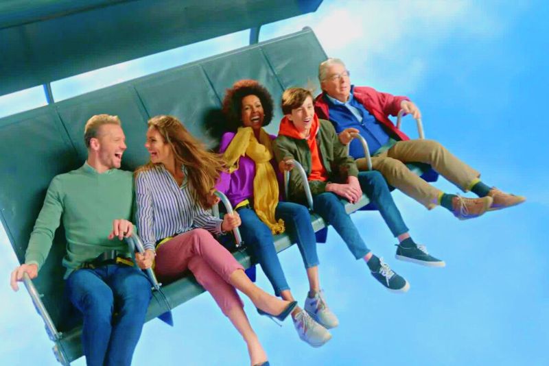Die 5D-Flugsimulation findet in einem speziell dafür ausgelegten Raum mit einer gewölbten Leinwand statt. Ihr Sitz bewegt sich entsprechend der Flugbewegung und Sie erleben alles, von den Wasserspritzern, während Sie über Flüsse gleiten, bis hin zum Duft der Tulpen, wenn Sie die berühmten Tulpenwiesen überfliegen.