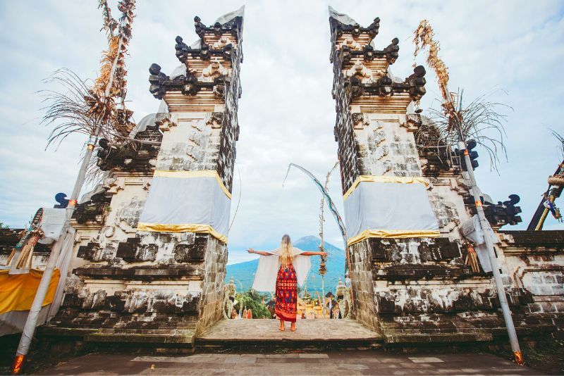 Am Himmelstor von Lempuyang genießen Sie eine unglaubliche Aussicht auf den Berg Agung und können dort Fotos an einem der schönsten Orte auf Bali machen.