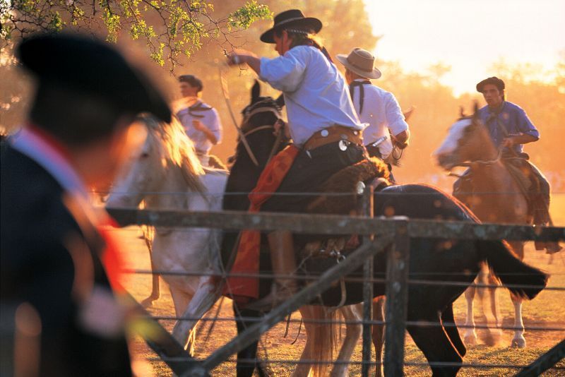 Reiten Sie auf einem Pferd oder fahren Sie in einer Pferdekutsche über die Ranch. Probieren Sie Empanadas und eine Auswahl an gegrilltem Fleisch, während Sie an einem Mate-Tee oder einem Glas Wein nippen. Freuen Sie sich auf die Gauchos, die unter anderem ihre Fähigkeiten im Werfen von "Boleadoras" und im Treiben von Tieren unter Beweis stellen.
