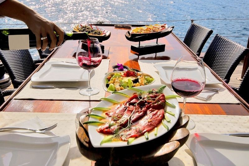 Verwöhnen Sie Ihren Partner oder eine besondere Person mit einem romantischen Abendessen auf der Terrasse eines Segelbootes. Segeln Sie um Palermo herum, beobachten Sie den Sonnenuntergang und lassen Sie sich ein Drei-Gänge-Menü und eine Flasche Wein schmecken.
