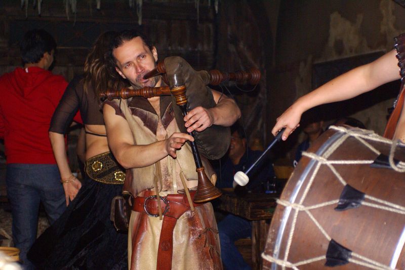 Sobald Sie im Restaurant ankommen, tauchen Sie in eine andere Welt ein, die von Hofnarren, Bauchtänzerinnen und Schlangenbeschwörern geprägt ist. Bewundern Sie die Taverne bei Kerzenschein, die stark durch die mittelalterliche Epoche zwischen dem 5. und 15. Jahrhundert inspiriert ist.