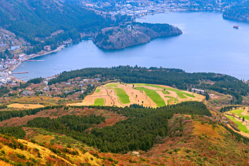 Machen Sie eine entspannte Bootsfahrt auf dem Ashi-See oder genießen Sie eine aufregende Seilbahnfahrt den Berghang hinauf im Owakudani-Tal – einer aktiven Vulkanzone mit natürlichen heißen Quellen und sprudelnden Schlammbecken.